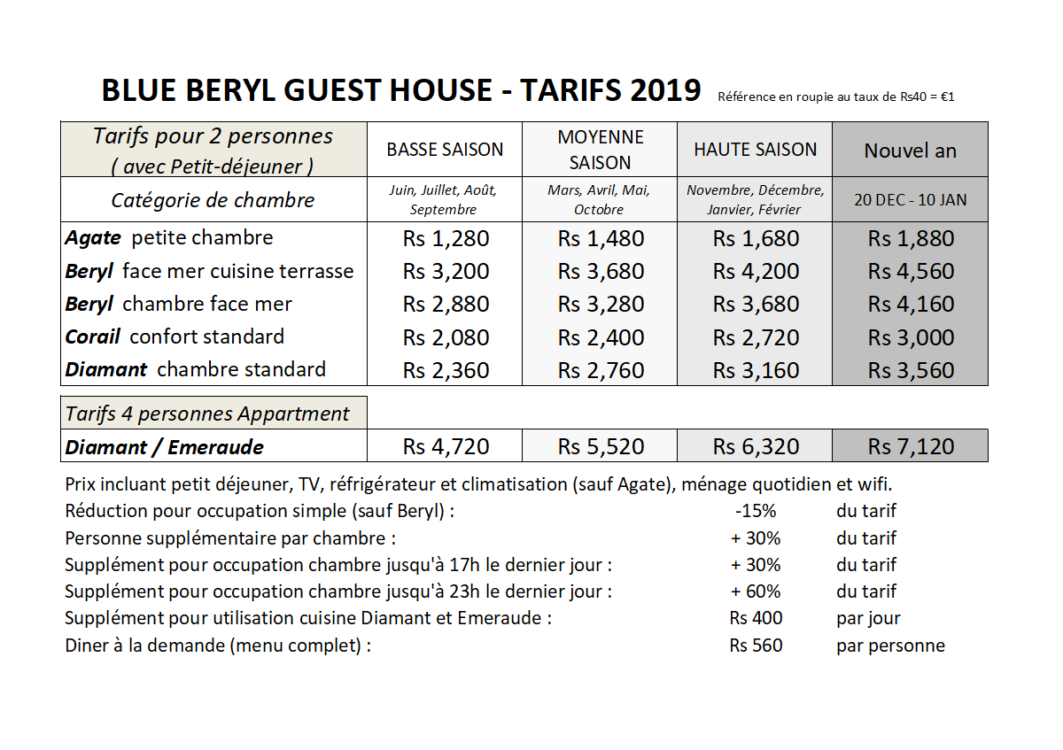 Blue Beryl Guest House dispose de plusieurs studios avec terrasse face à la plage avec vue imprenable sur la mer et plusieurs chambres avec salle d'eau. Un portail donne accès directement à l'une des plages de île Maurice la plus belle et préservée : la Pointe d'Esny. Juste en face, vous pouvez faire de la plongée en apnée. Le site est très riche en coraux multicolores et poissons tropicaux. La plage publique de Blue-Bay est à seulement 2 minutes à pied.